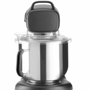 Tartalmaz egy tálat és 4 mosogatógépben tisztítható tartozékot: 1 drót habverőt, 1 lapátot és 1 dagasztókampót SS AISI 304-ben és 1 szilikon szélű lapátot