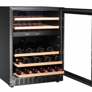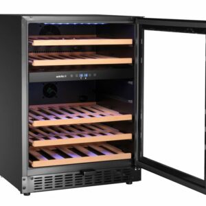 Az Arktic Wine hűtőláda 2 zónás, 46 palackos két hűtőzónával rendelkezik, állítható hőmérséklettel. Legfeljebb 46 palack tárolására alkalmas. Fekete, porfestett felülettel, edzett, keret nélküli üvegajtóval, kihúzható bükkfából készült polcokkal és LED-világítással rendelkezik, így beépített és szabadon álló felszerelést is kínál. A digitális kijelző, az érintőgombok, az automatikus leolvasztás és az ajtózár további funkciókat biztosít.