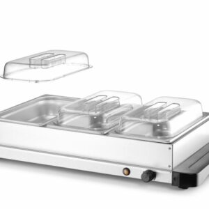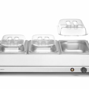 A HENDI ételmelegítő gyorsabb és egyenletesebb hővisszatartással felülmúlja a hagyományos modelleket. 40 °C és 75 °C közötti hőmérséklet-tartományban állítható, 3 db, a hő és a frissesség megőrzése érdekében hozzáillő fedéllel rendelkező GN 1/3 tárolóedényt tartalmaz. Ráadásul leválasztható svédasztalos melegentartóként vagy főzőlapként való használatra, is.