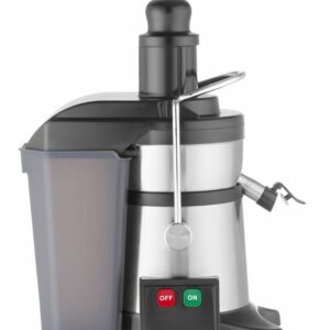 A nagy sebességű motorral rendelkező HENDI Compact gyümölcscentrifuga gyors és hatékony gyümölcslé készítést tesz lehetővé. A masszív rozsdamentes acél ház tartós teljesítményt biztosít, míg a bőséges 4,4 literes gyümölcshús tároló lehetővé teszi a hosszabb, megszakítás nélküli működést. A körülbelül óránként 100 kg-os termelési kapacitással rendelkező gyümölcscentrifugát úgy tervezték, hogy lépést tartson a forgalmas környezetekkel.
