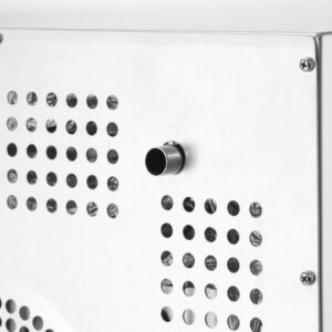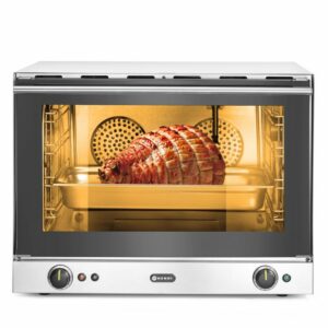 A HENDI konvekciós sütő párásítással H100S egy robusztus rozsdamentes acél konvekciós sütő közvetlen párásítással, kettős ventilátorokkal és fűtőelemekkel az egyenletes teljesítmény érdekében. Hűvös tapintású, dupla üvegezésű ajtóval, belső világítással rendelkezik, és 4x GN 1/1 tálcához használható, 75 mm-es térközzel. A hátsó vízbevezető nyílás és a 120 perces időzítő segíti a zökkenőmentes működést a nagy igényű konyhákban.