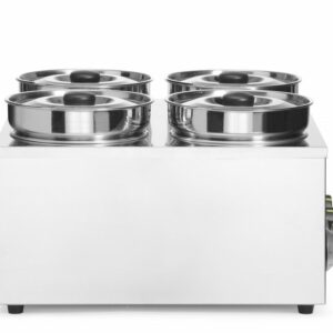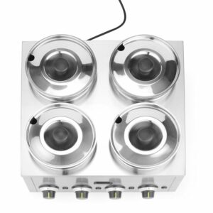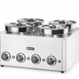 A HENDI Thermosystem 4 a forró szószokat, leveseket és egyéb ételeket a kívánt hőmérsékleten tartja, égés nélkül. A hőmérséklet a terméktől függően 6 szintre állítható. A tartós szerkezet stabilitást biztosító, nem alvó lábakkal rendelkezik.