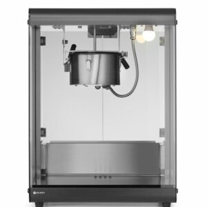 A HENDI Popcorn gép szénacél vázzal és edzett üvegházzal rendelkezik, amely szilárdságot, tartósságot és jól láthatóságot biztosít. Tartalmaz egy pattogatott kukorica melegítő serpenyőt keverőegységgel az egyenletes kipattogtatás érdekében, egy fűtött alapot a melegentartáshoz, valamint egy megvilágított belső teret a látványosabb tálalásért. Praktikus kiegészítők, mint a zsanéros edzett üveg szervizajtó, a pattogatott kukorica adagolófedél és a morzsatálca, elősegítik a hatékony és higiénikus működést.