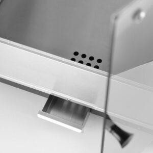 Morzsatároló fiók a kamra alatt, az el nem pattogott szemek és törmelékek tárolására.