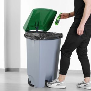 A HENDI szemeteskonténer tartós polipropilénből készült, és kéz nélküli, pedálos fedélmechanizmussal rendelkezik. Beépített fogantyúval és kerekekkel rendelkezik a zökkenőmentes mozgás érdekében. A fedelek külön kaphatók, 6 színben.