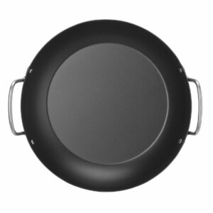 A HENDI Serving serpenyő két ergonomikus, rozsdamentes acél fogantyúval rendelkezik, amelyek megkönnyítik az ételek közvetlenül a sütőből vagy a tűzhelyről az asztalra történő felszolgálását. Nagy felülete megkönnyíti az összetevők sütését és elforgatását. Szénacélból készült, és bármilyen típusú tűzhelyen használható.